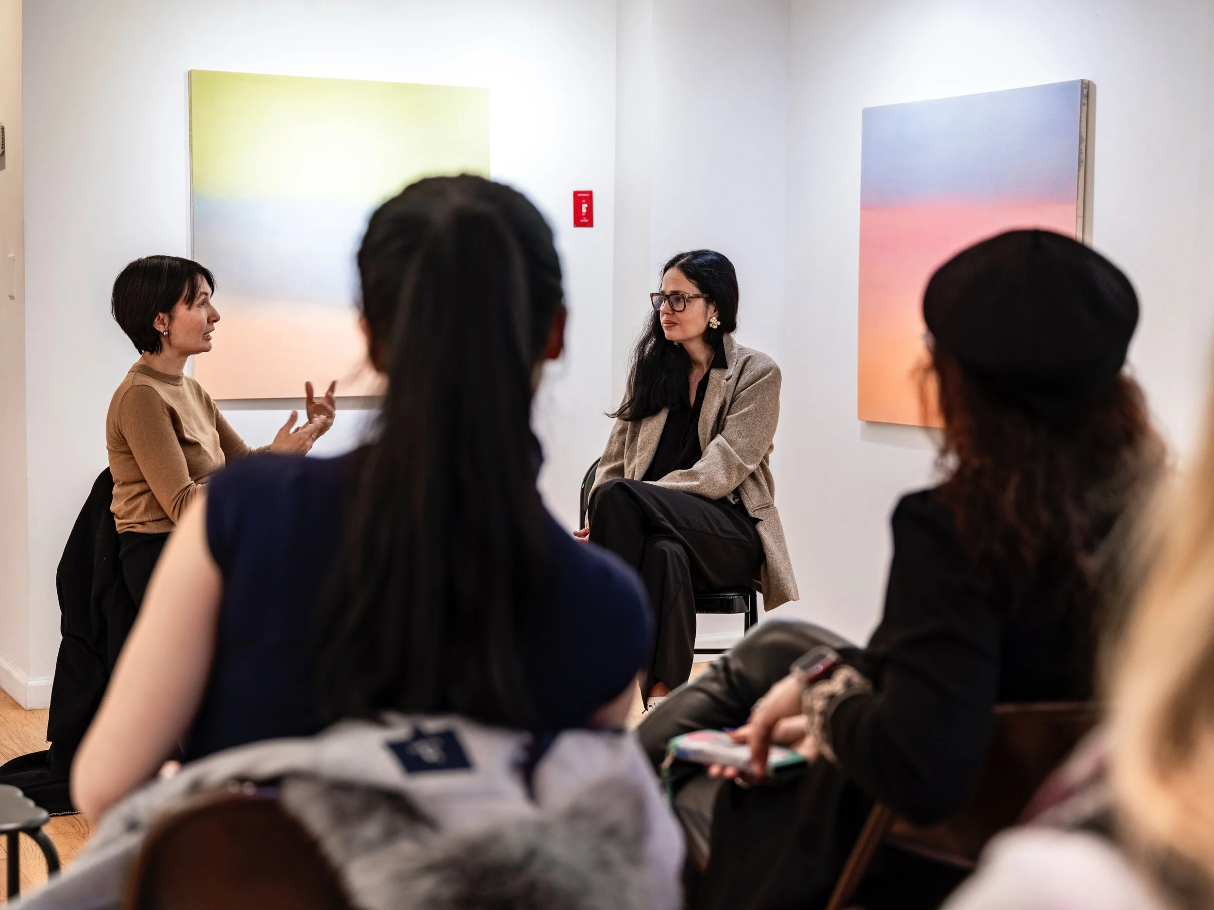 Join us for an artist talk as part of the Glistening Water solo exhibition by artist Alena Ahrens. This program is a conversation between Ahrens and Nina Chkareuli, and moderated by curator Zhiheng Ashely Zhang. This discussion will reflect on how color, form, and cross-cultural aesthetics shape Ahrens's practice today.